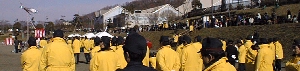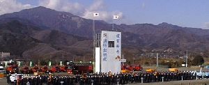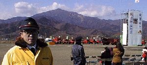 風は強く寒かったのですが、美しい大山をバックに消防出初式が行われました。