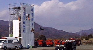 レスキュー隊による救助活動の訓練が実演されました。