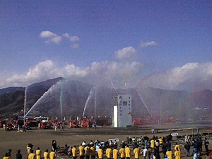 多くの消防車による放水訓練は圧巻でした。