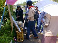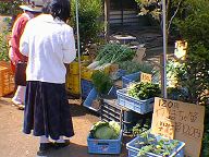 近くの農家の庭先で、野菜や花を売ったり平塚のさつまいもを使ったおまんじゅうの紹介をしたりしていました。
