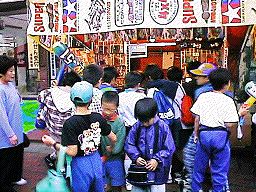 男の子に爆発的人気のミニ四駆の露店には、たくさんの子どもたちが集まって品定めをしていました。
