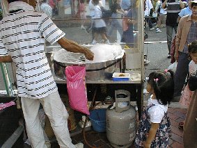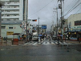 朝10時の歩行者天国の様子。雨のためガラガラでした。